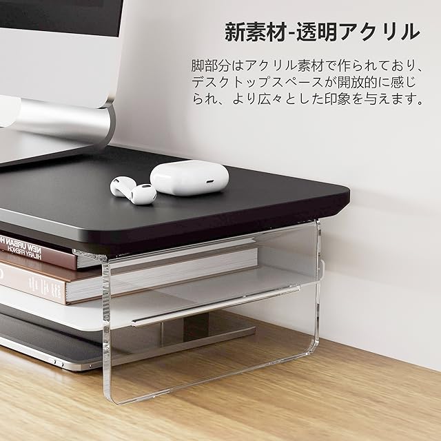 Fenge モニター台 モニタースタンド 卓上 机上台 パソコン台 PC台 机上ラック 60cm横幅 2段 木製天板 アクリル製脚 デスクトップ用 机上 モニタースタンド 机上台 pcモニター台 パソコンラック 卓上 収納 整理整頓 ブラックG04Y2062B