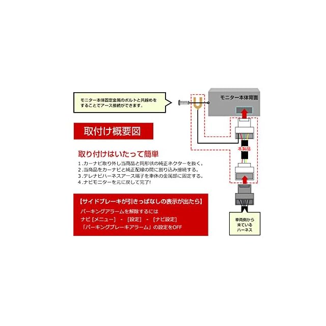 当商品はカプラー式(コネクター)になっており、ナビ本体を取り外し、ナビ本体と純正配線の間に差し込んでアース線を付けるだけです