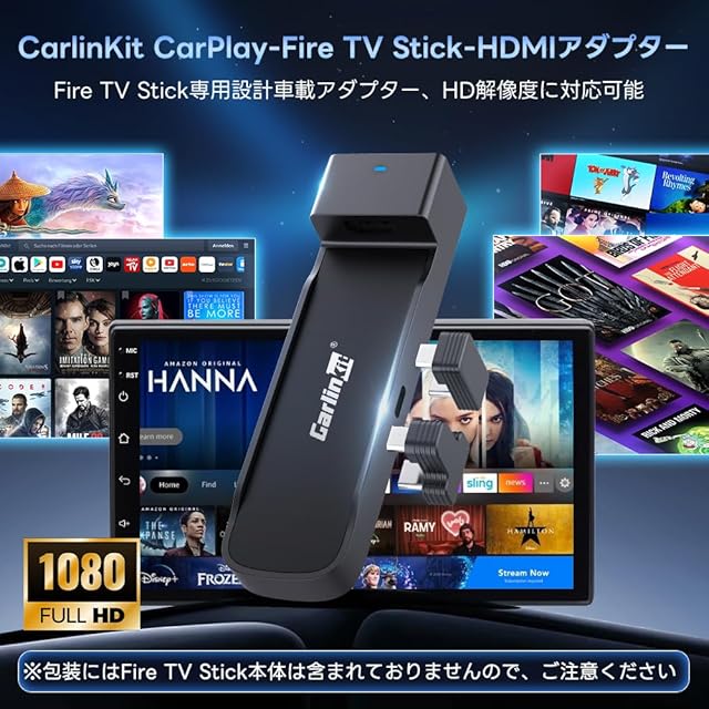CarlinKit CarPlay-Fire TV Stick-HDMIアダプターHDMI入力対応 TV スティック専用設計 プラグアンドプレイ 操作簡単 ハイビジョン動画を転送可能 純正で有線Apple CarPlay搭載する車両対応