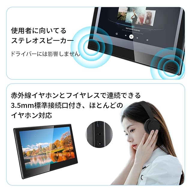 大画面サイズ: 14インチIPS液晶パネルを採用し、広視野角で鮮明な映像を後部座席で楽しめます