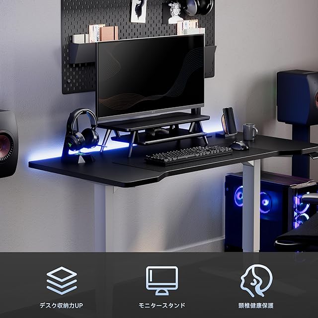 【人体工学設計&猫背対策・作業率アップ】:デスクの上置棚にモニターを載せることで目線が約14cm高くなり、自然と首や背筋が伸びるようになります。正しい姿勢を良くキープしながら、健康なワークスタイル変革に!テレワークの作業効率化と整理整頓にも役立つアイテムです。
