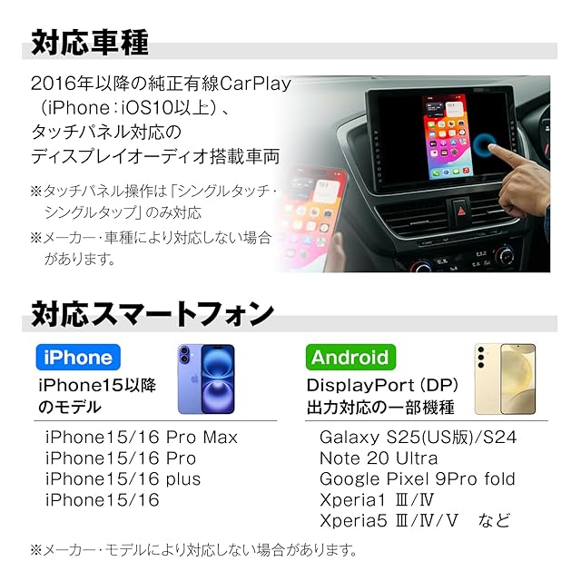size:双方向タッチ操作 ミラーリング style:CarPlay+AndroidAuto対応: