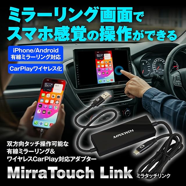 MAXWIN MirraTouch Link ミラーリング アダプター スマホ画面をカーナビに映す 双方向タッチ操作 ディスプレイオーディオ YouTubeを車で見る ワイヤレスCarPlay iPhone15/16/Android DP対応 DA-AD03