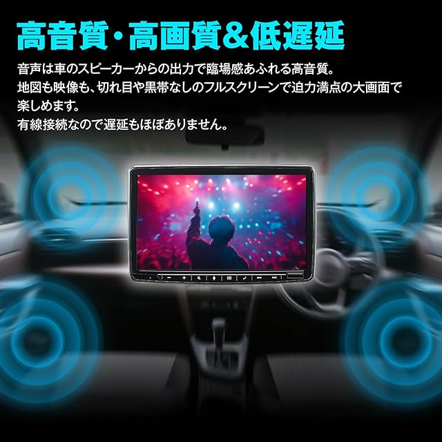 【スマホの画面をそのまま車に】 スマートフォンの画面を、愛車のディスプレイオーディオにそのまま映し出せるミラーリング機能搭載。 CarplayではできないYoutubeなどの動画視聴や、ナビアプリでのナビゲーション、SNSチェックまで、すべて車内で楽しめます。 長距離移動向けや車内のエンタメ性を高めるのに最適なアイテムです。