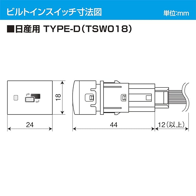 ビルトインスイッチ寸法(TSW018):W24mm×H18mm×D44mm