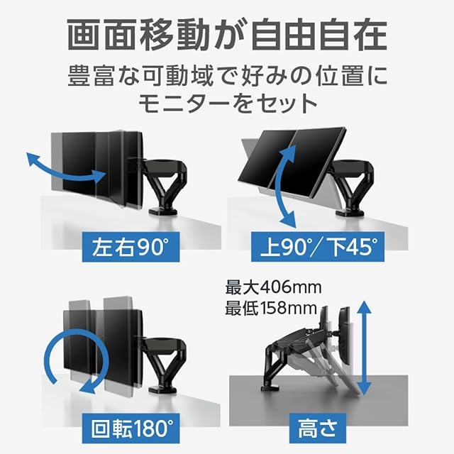 【デスク上のスペースを有効活用!】液晶モニターの台座(スタンド)がなくなって、デスク上すっきり!液晶画面をお好みの位置に設置できるので、作業効率が上がります。テレワークで自宅の書斎に設置したい方にも。