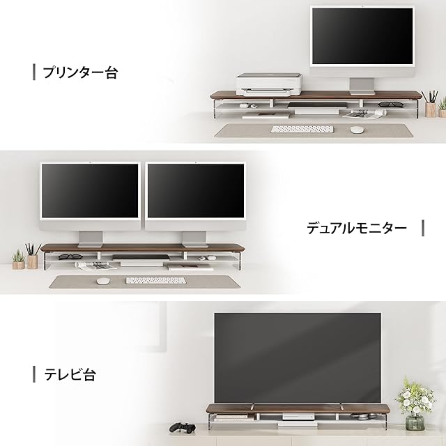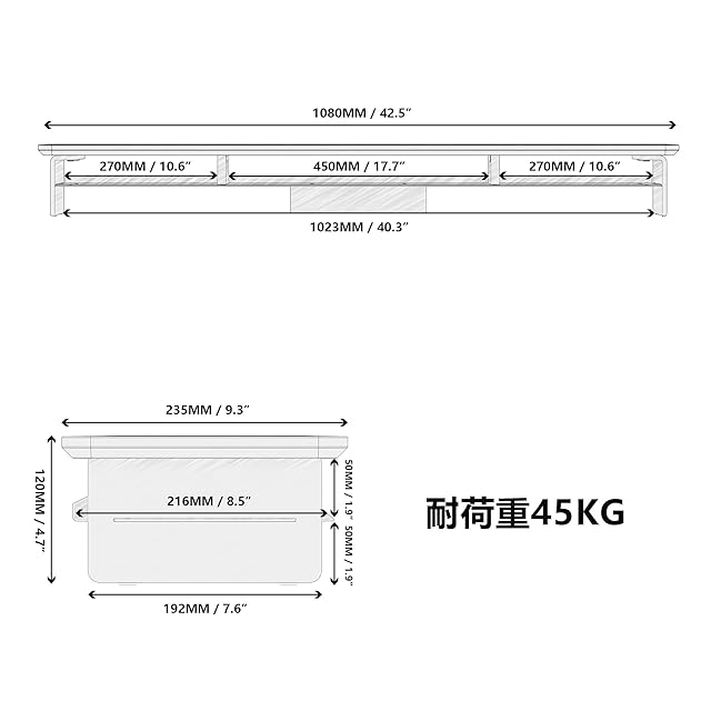 【商品仕様&12か月品質付き】モニター台のサイズ:1080*235*120MM,天板の厚さ18MM;脚: アクリル 本体重量:約7.8kg 最大耐荷重:45kg 組み立て式。期間内に、取り扱い説明書に準じた使用状態で故障や不具合が生じた場合は当社の判断により交換させていただきます。