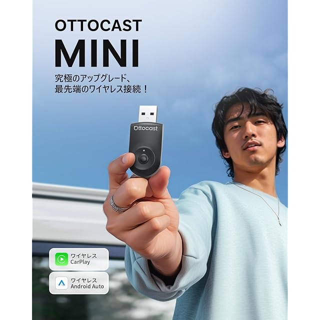 【公式】OTTOCAST オットキャスト Mini 2025最新 ワイヤレスCarPlay/Android Autoアダプター ミニ 純正有線CarPlay/Android Auto対応車専用 Bluetooth音楽/通話対応 プラグ&プレイ 自動接続 98%以上の車種適合 技適認証取得済