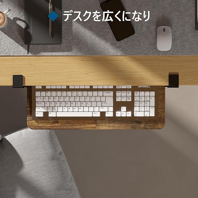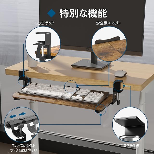 【高耐久性と安全設計】キーボードトレイは高品質な素材で作られており、長期間の使用に耐える頑丈さを持っています。安全ストッパーが付いており、使用中にキーボードが滑り落ちるのを防ぎます。キーボード 台、机拡張としての信頼性を提供します。