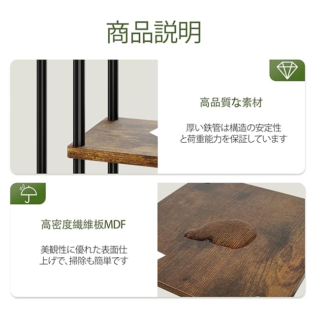 防錆・防污損の高耐久素材:密度板とアイアン管を組み合わせた観葉植物 棚に、汚れが付きにくいプラスチックスプレー塗装塗装を施しています。花粉や泥土が付いても湿布1回でピカピカ