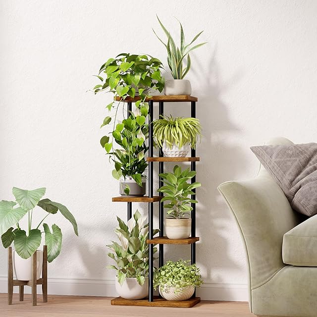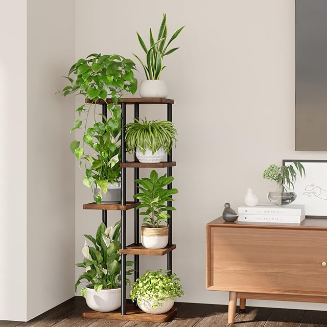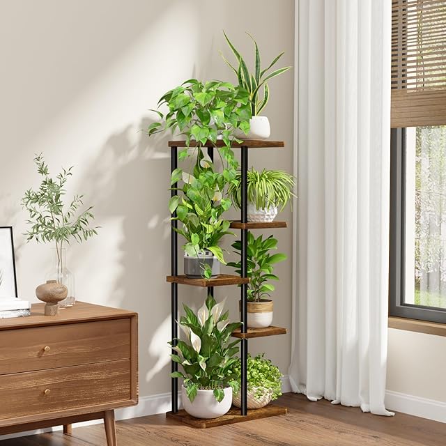 5段レイヤーで植物の層次感演出:多層式レイアウトで、下段から順番に花瓶・観葉植物・香り草・小物収納が可能!各段の高さ差を活かした配置で、天井光を効率的に受けられるため、植物の光合成が促進されます。縦長空間の家屋やコンパクトルームでも、視覚的に空きが広がるモダンな収納アイテムです