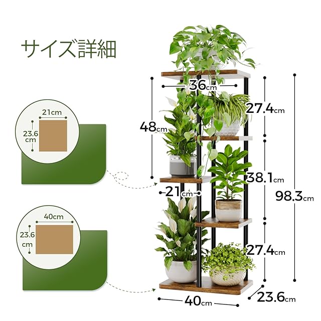Bamworld フラワースタンド 室内 プランタースタンド 5段花台 観葉植物台 おしゃれ 植物 棚 植木鉢台 植木鉢スタンド リビング 寝室 ベランダ
