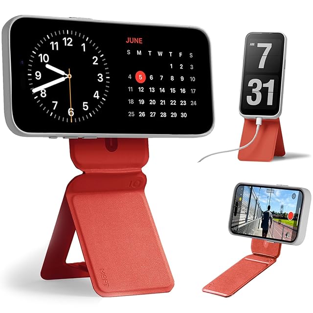 MOFT 七変化マルチスタンド 【全機種対応/アイアンリング付き 】 MOVAS iPhone16 スタンド 16/154/13/12 シリーズ マグネット スマホスタンド MagSafe対応 多角度調節 薄型軽量 折り畳み式 ミニマリスト 全機種対応 (サンセットレッド カード収納無しタイプ)