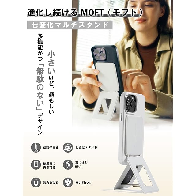 【MagSafe対応/非対応どちらにも使用可能!アイアンリング付き】 MagSafe非対応のスマホも付属のアイアンリングをスマホケースに貼り付ければ、「MOFT 七変化マルチスタンド」をご使用いただけます。