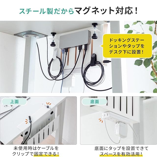 耐荷重は3kgです。スチール製なのでマグネットのケーブルホルダーやUSBハブなどを取り付けができます。