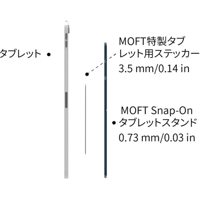 ・最新MOFT Snap-On タブレットスタンド:旧来のMOFT Xタブレットスタンド の6つの角度に加えて、 Snap-Onシステムでしかできない、動画鑑賞などに最適なフローティングモードも使える! もっと楽に、何かに没頭できる、フレキシブル構造。