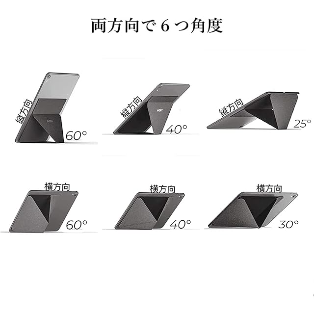 ・縦使用時:MOFT Xは縦置きだけで3段階の角度25°/40°/60°調整が可能で、ぐらつくこともなく、安定してお使い頂けるデザインになっています。