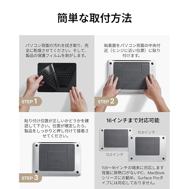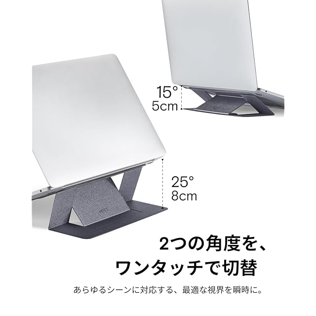MOFT【公式直営店】ノートパソコンスタンド ノートPCスタンド 【放熱穴付き】 持ち運び簡単 折りたたみ式 超薄型 安定性 15°&25°二段階調整可能 16インチまで対応 コンパクト PC/MacBook/ラップトップ/iPadタブレット に対応 パソコンスタンド 「貼り付け」(スターグレー)