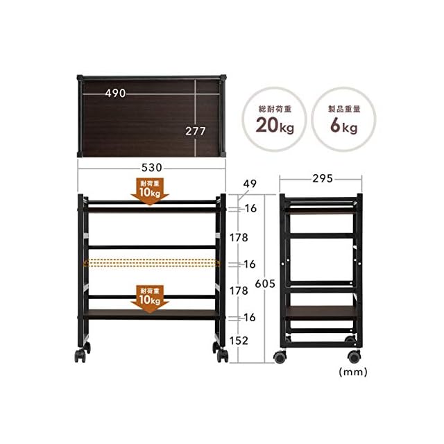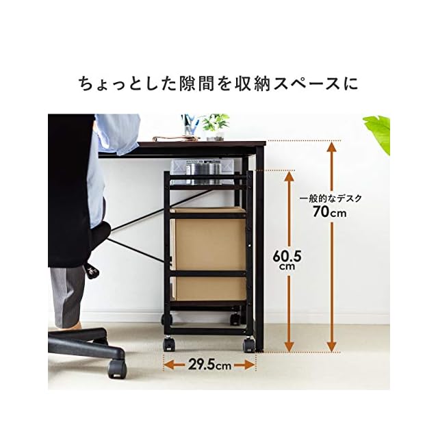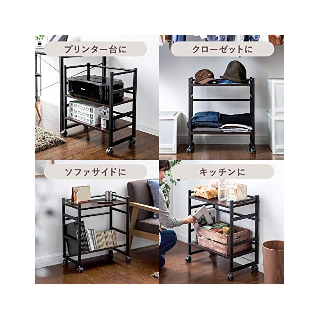 汚れに強いメラミン化粧板を使用し、落下防止バーで収納物が落ちにくいです。プリンター台としてや、クローゼット・押入れの整理用、ソファサイドラックとしても使用可能です。
