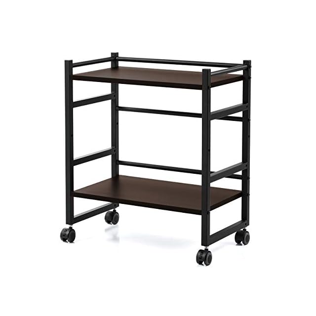 商品名:サンワダイレクト ファイルワゴン プリンタ台 2段 高さ60.5cm 総耐荷重20kg 選べる水平/斜め天板 棚板高さ調整 キャスター付 木目 100-WG008M