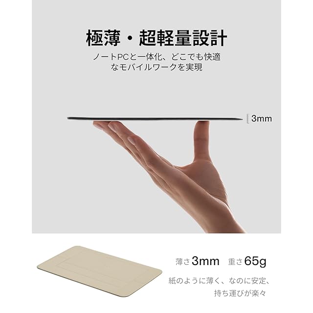 【厳選素材・重さに耐久】特製したポレウリタンとファイバーグラス素材と巧みな折り畳みデザインと組み合わせ、超軽量・超薄型で高強度・高安定性を実現します。耐荷重は最大5kg、作業時の安定・安全な支えを提供いたします。*ご注意:パソコンスタンドをご使用の際、キーボードの周りを叩くとパソコンが揺れるという意見を頂きました。この件について、実際に使用した場合を検討し、作業時両手を自然にキーボード上に置くと揺れることはないのでご安心ください。