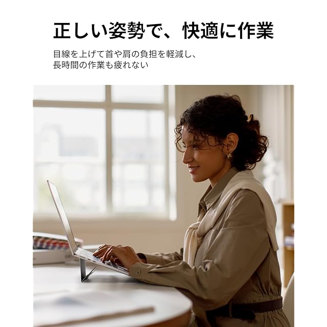 【シンプルで効率的・変わらぬサポート】特殊なPU素材を使用し、思い通りに動く折りたたみ式デザインを採用し、軽量・小型・薄型でありながら、最大耐荷重5kgの日常使いのできるパソコンスタンドです。 *ご注意:パソコンスタンドをご使用の際、キーボードの周りを叩くとパソコンが揺れるという意見を頂きました。この件について、実際に使用した場合を検討し、作業時両手を自然にキーボード上に置くと揺れることはないのでご安心ください。