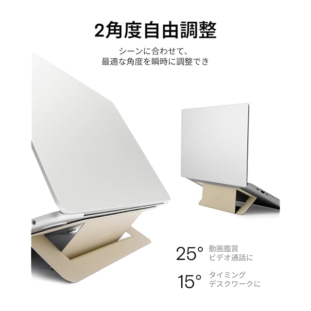 【折り畳み式・2段階調整】MOFT Airflow Standは、MOFT歴代のパソコンスタンドのデザインを踏襲し、一秒開きで15°& 25°二段階の角度があらゆるシーンで調整可能、快適な使用角度を提供し、仕事の効率を向上させることができます。