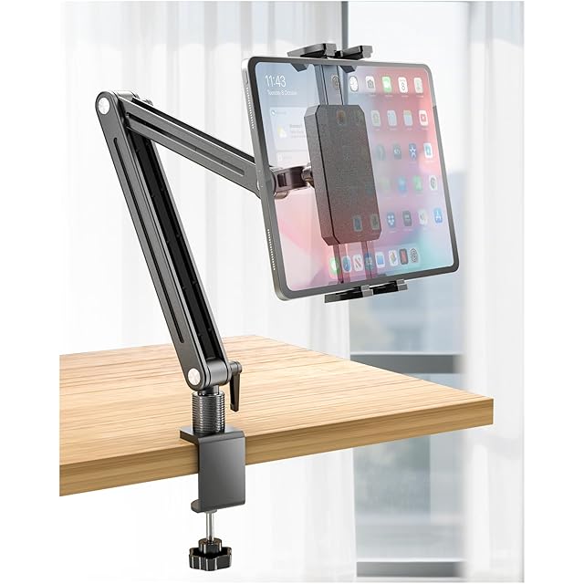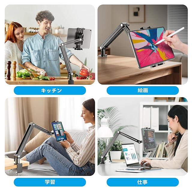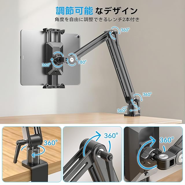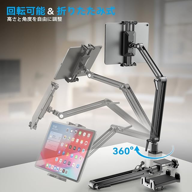 Jakeko(ジャケコ) 調節可能なタブレットマウント デスク用 - 360°回転ベース トールアームホルダースタンド iPad Air/Pro/Mini (18.5inch)
