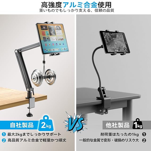 アルミ合金製で高い耐荷重:高品質のアルミ合金製のこのスタンドは、非常に軽量でありながら耐久性に優れ、最大4.4ポンド(約2kg)の重量まで支えることができ、携帯性と強度を兼ね備えています。