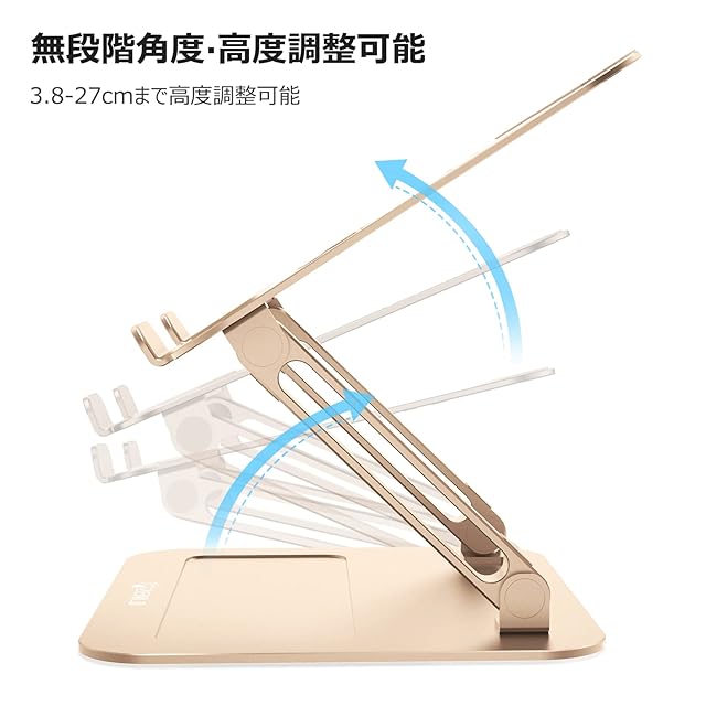 ノートパソコンスタンド Pewesv PCスタンド 折り畳み式 人間工学 無段階調整 パソコン台 アルミ合金製 優れる安定性 放熱性 ノートPC 台 耐荷重 20kg 姿勢改善 腰痛&猫背&肩こり解消 タブレットスタンド 滑り止め 教卓 zoom会議 Macbook Air/Macbook Pro/iPad Pro/Notebooksなど17.3インチまでに対応 (ゴールド)