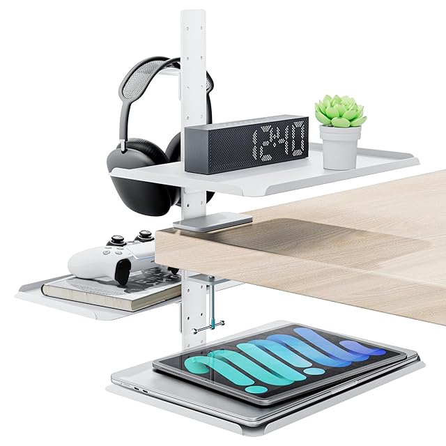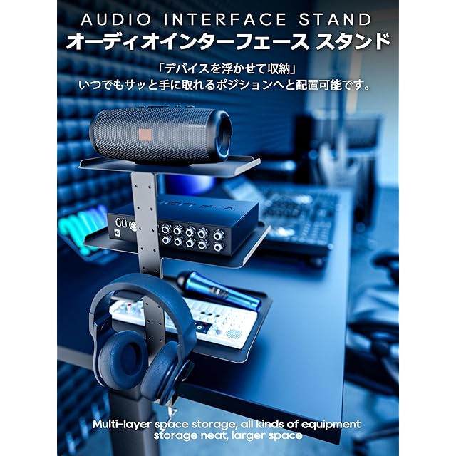 SAPESEHE デスクサイド収納ラック 3段階 高さ自由調節 卓上収納トレー オーディオインターフェース スタンド 多用途 省スペース テーブル下 デスク周り収納 スチール製 オフィス用品 事務用品
