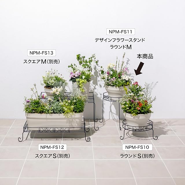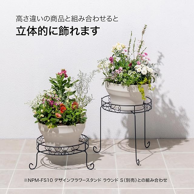タカショー プランター デザインフラワースタンド ラウンド Mサイズ チャコールグレー インテリア おしゃれ 完成品 スチール製 NPM-FS11