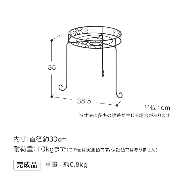 サイズ:約幅38.5cm×奥行38cm×高さ35cm。 重量:約0.8kg。 色:チャコールグレー。 材質:スチール。 内寸:約Φ30cm。耐荷重:10kgまで。
