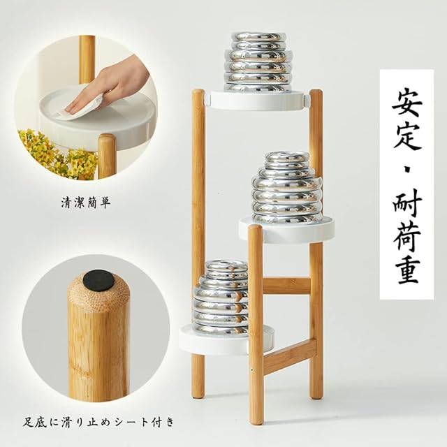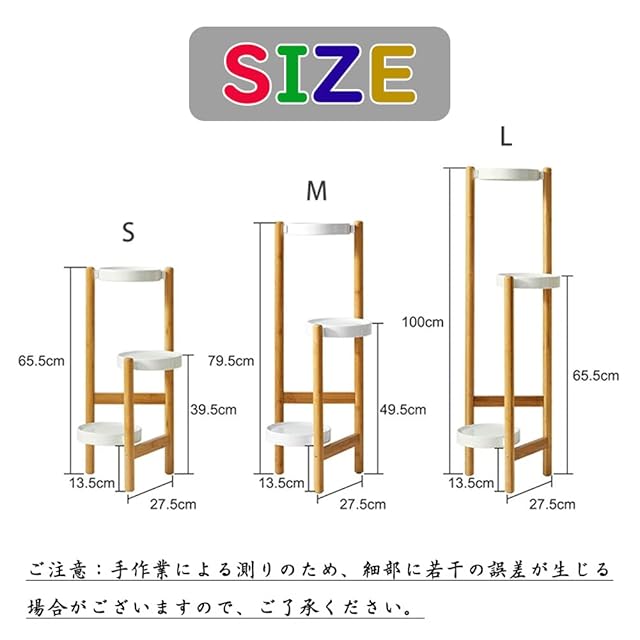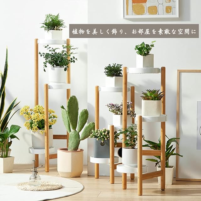 Glynislife フラワースタンド 花台 室内 アイアン 3連式 プランタースタンド 花台 植木鉢台 ガーデンラック プランターベース 組み立てが簡単 安定 生活雑貨 観葉植物 鉢置き リビング ベランダ 玄関 室内 ラワースタンド・園芸ラック (ナチュラル -竹製, 3段)