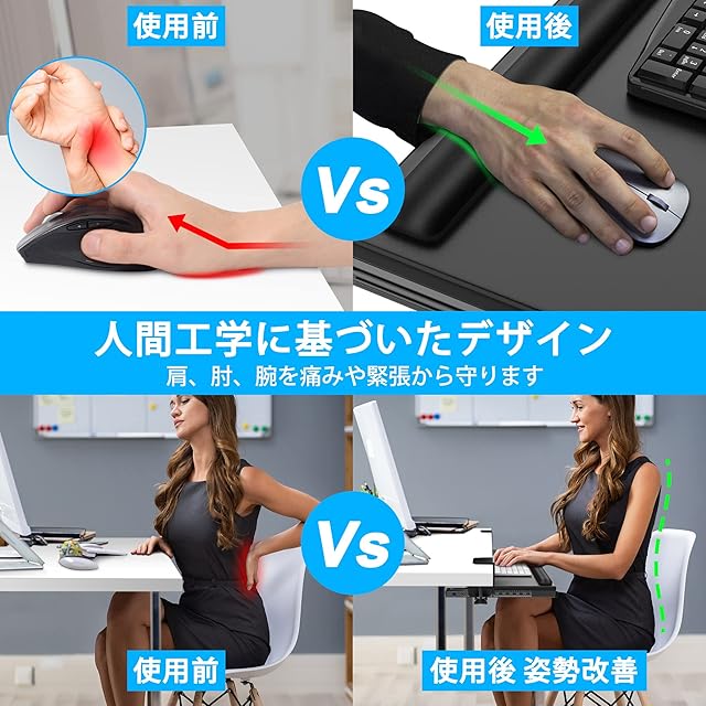 人間工学の強化: ぐらつきのないレールで、デスク下キーボードトレイをデスクの端から最大9.4インチまでスムーズに拡張でき、人間工学に基づいたセットアップを実現し、手首、首、肩へのストレスを和らげます。