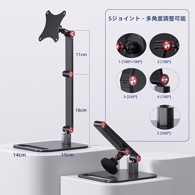 Jakeko(ジャケコ) 調節可能なタブレットマウント デスク用 - 360°回転ベース トールアームホルダースタンド iPad Air/Pro/Mini (18.4 inch)