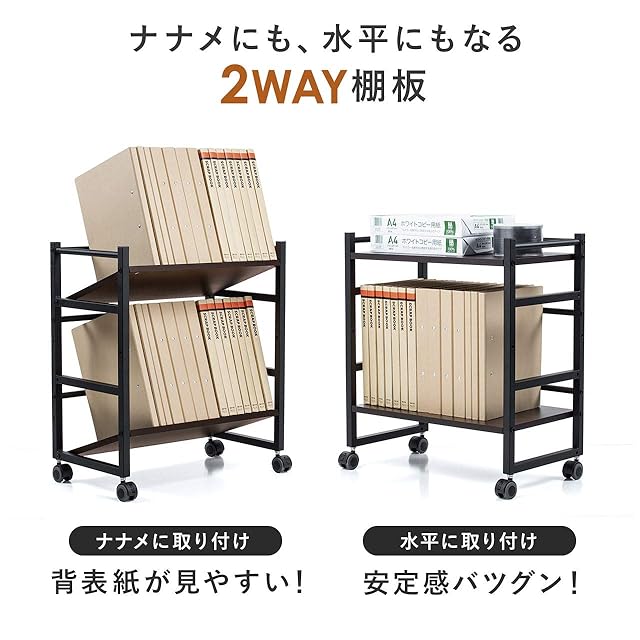 サンワダイレクト ファイルワゴン プリンタ台 2段 高さ60.5cm 総耐荷重20kg 選べる水平/斜め天板 棚板高さ調整 キャスター付 ホワイト 100-WG008W