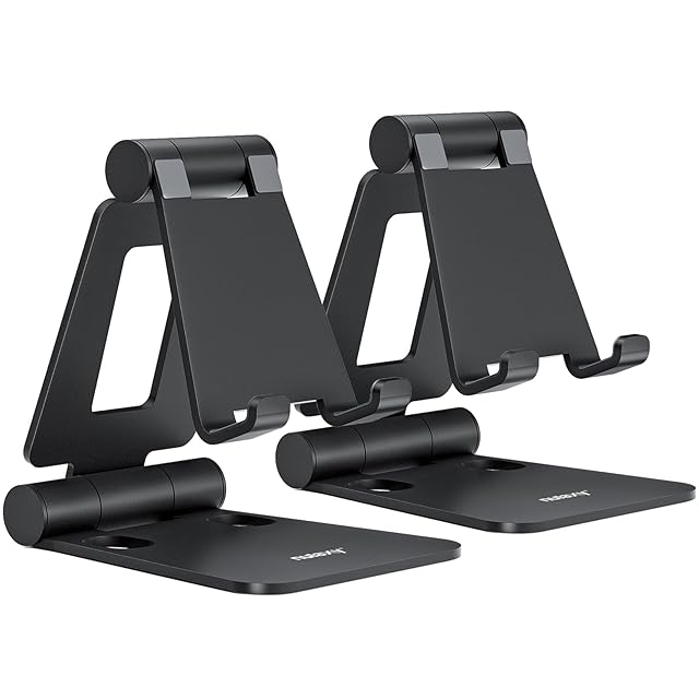 Nulaxy 2個セットクデュアル折りたたみスマホスタンド、ポータビリティ角度調整可能スマート携帯スタンド アイフォン スマフォ アンドロイド iPhone 16 15 14 plus pro promax 13 mini 12 11 プロ マックス se Huawei Xperia android に対応 ブラック