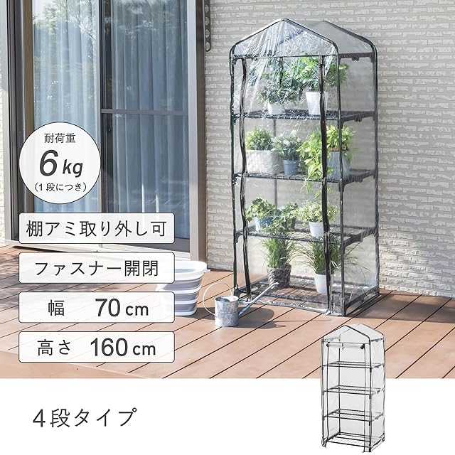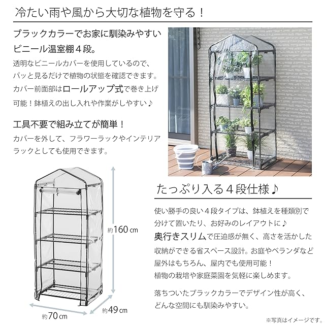 color:ブラック size:ビニール温室棚4段 style:温室棚: