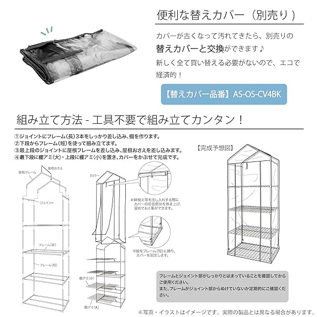 color:ブラック size:ビニール温室棚3段 style:替えカバー: