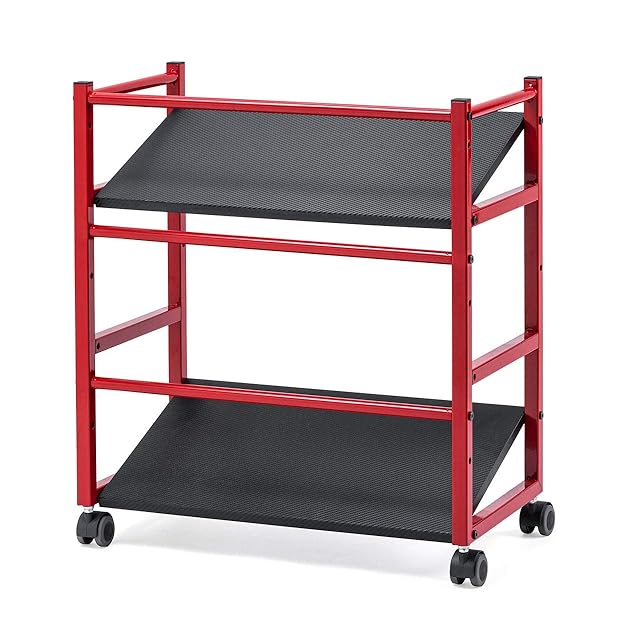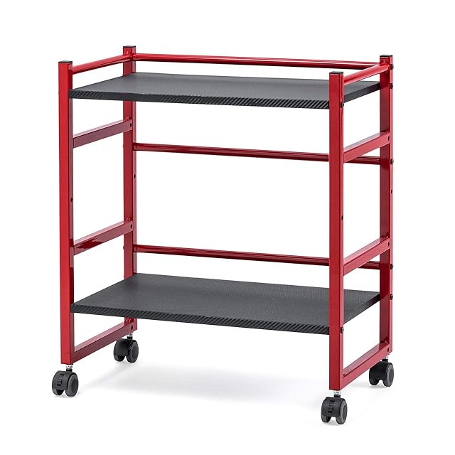 サンワダイレクト ファイルワゴン プリンタ台 2段 高さ60.5cm 総耐荷重20kg 選べる水平/斜め天板 棚板高さ調整 キャスター付 レッド 100-WG008R
