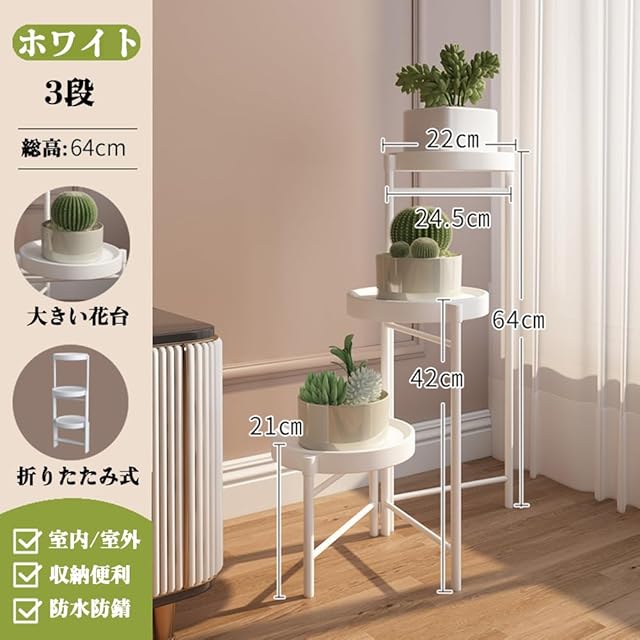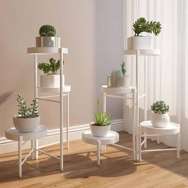 Glynislife フラワースタンド 花台 室内 アイアン 3連式 プランタースタンド 花台 植木鉢台 ガーデンラック プランターベース 組み立てが簡単 安定 生活雑貨 観葉植物 鉢置き リビング ベランダ 玄関 室内 ラワースタンド・園芸ラック (ホワイト, 3段)