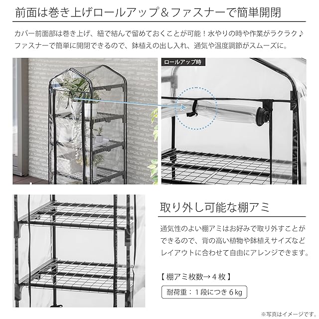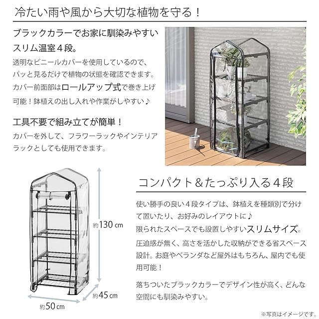 color:ブラック size:スリム温室4段 style:温室棚: