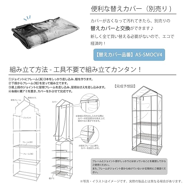 【材質】フレーム・棚アミ:スチール(エポキシポリエステル樹脂塗装) ジョイント部:ポリプロピレン カバー:塩化ビニル樹脂