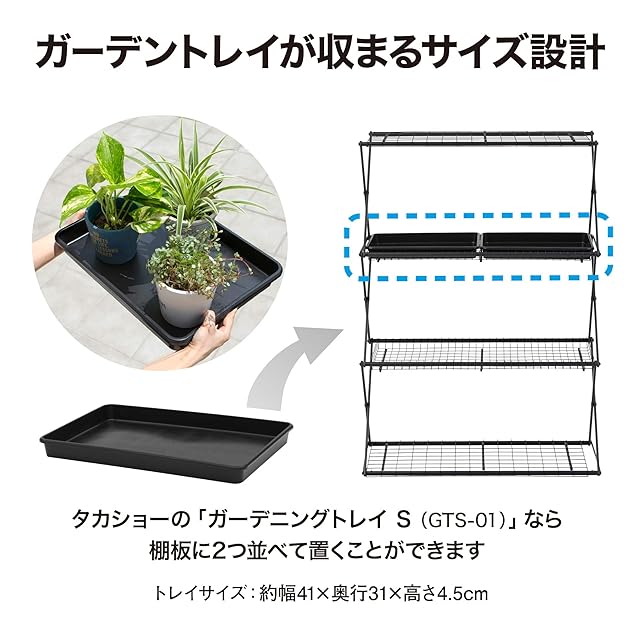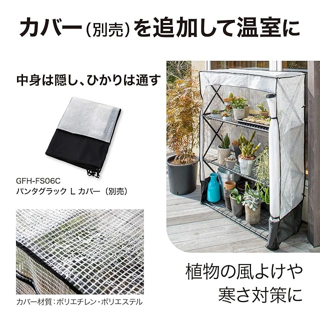 折りたたみ式の収納ラック。使用しない時はコンパクトにして収納可能です。伸縮自在な仕様なのでコンパクトに折りたため、そのまま収納いただけます。持ち運べるのでアウトドアにも活躍します。一見するとシンプルなラックは、別売りのカバーをつけると温室として使える多機能タイプ。 雨風や霜から植物を守りながら、スタイリッシュな佇まいで置く場所を選びません。