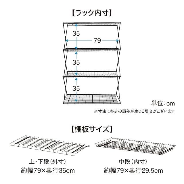 棚板サイズ:[上段・下段の外寸]約幅79×奥行36cm [中段の内寸]約幅79×奥行29.5cm