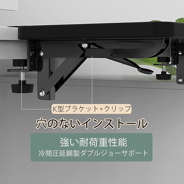 【取り付け簡単】取り付け手順に従い、素早く取り付けられます。 すべての作業は5分で完了します。 穴を開けない取り付けにより、机を傷つけることがありません。