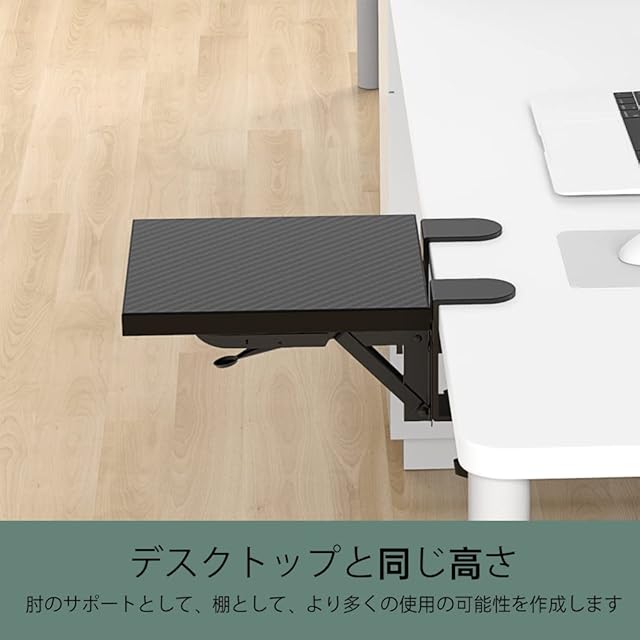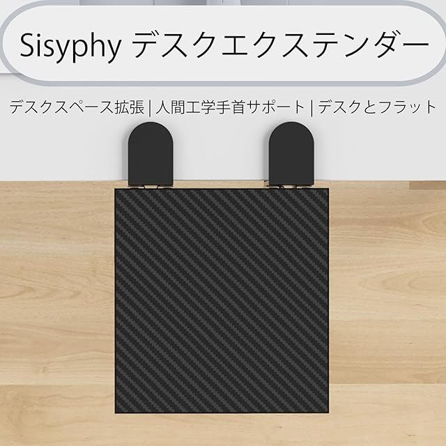 Sisyphy デスクエクステンダー 人間工学デスク拡張 23x24cm【デスク面とフラット/穴あけ不要/折りたたみ式/肘腕サポート】エルゴノミック キーボードトレイ クランプ式取り付け 耐荷重15kg、デスクスペース拡張 PC作業効率UP(ブラック)