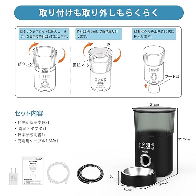 ✅【タイマー式で自動リピート給餌】 タイマー式で、一回設定すれば、毎日繰り返しでリピート自動給餌でき、餌やりの手間を軽減できます。設定した時間に設定した量で給餌できて、残業や短期出張、旅行、朝寝坊などの時に、ペットの食事を心配しなくて安心できる自動給餌器です。
