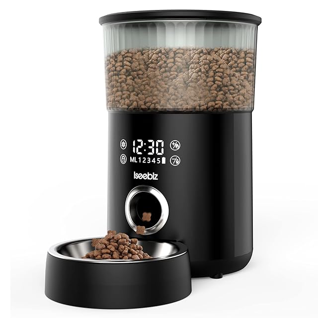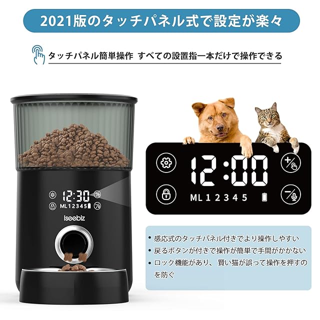 Iseebiz 自動給餌器 猫 中小型犬用 餌やり機 タイマー式 1日5食 3.5L 大容量 最大20日連続自動給餌 録音可 2Way給電 赤線センサー 自己保護機能 取り外し可 お手入れ簡単 日本語対応説明書付き 半透明タンク ステンレス製トレイ付き 安心の電話サポート